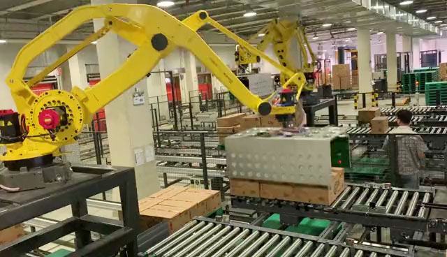 码垛案例-韩国食品企业整排码垛项目_天津6686有限公司